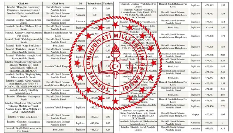 İstanbul, Türkiye’nin en kalabalık ve en prestijli okullarının bulunduğu şehirdir. Bu yıl, İstanbul'daki okulların taban puanları, öğrencilerin başarı düzeylerinin yüksek olduğunu göstermektedir. 2025 yılı için Anadolu Liseleri ve Fen Liseleri'nin taban puanlarına göz atalım: